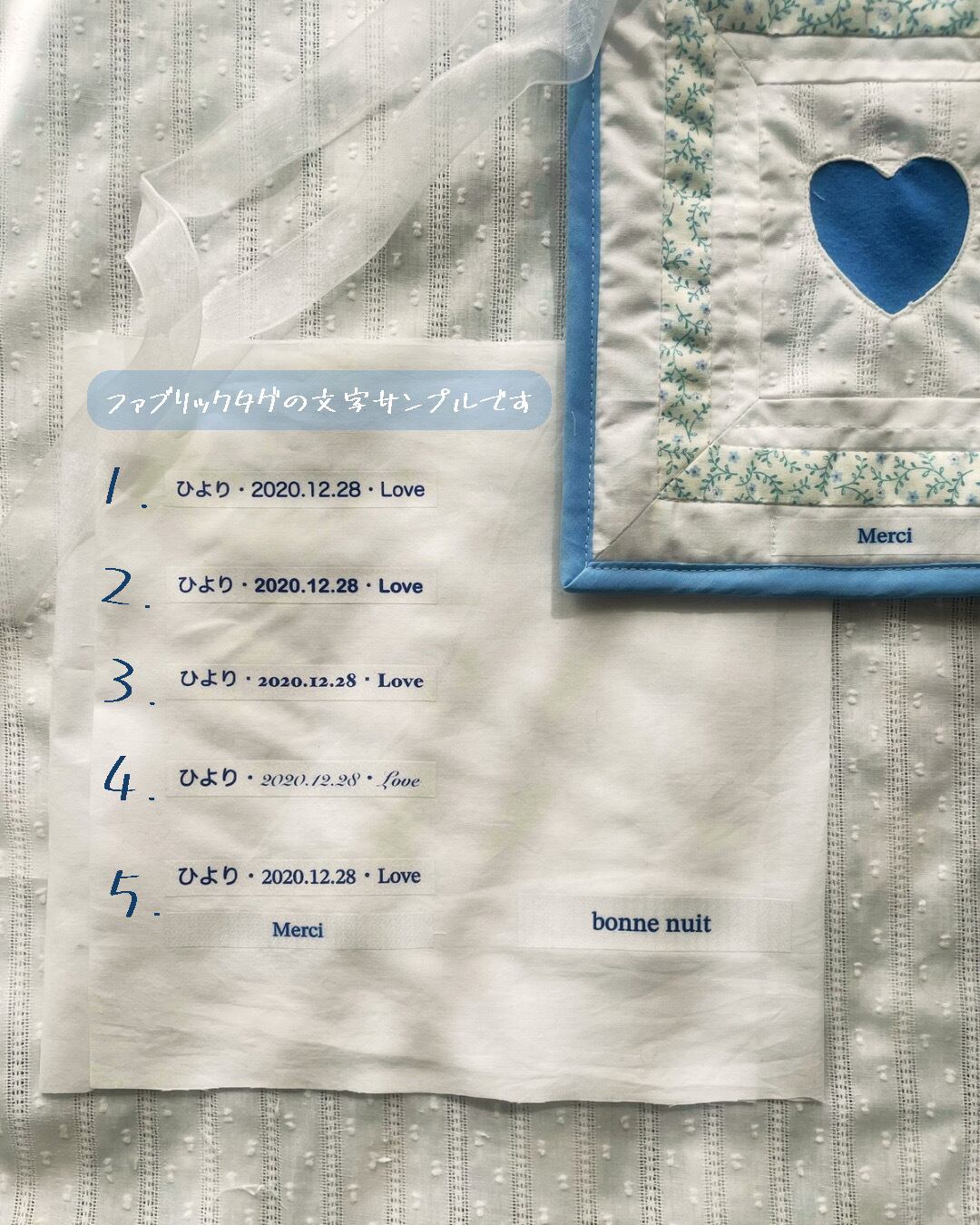 (例:ファブリックタグ→ 2020.10.31)など。